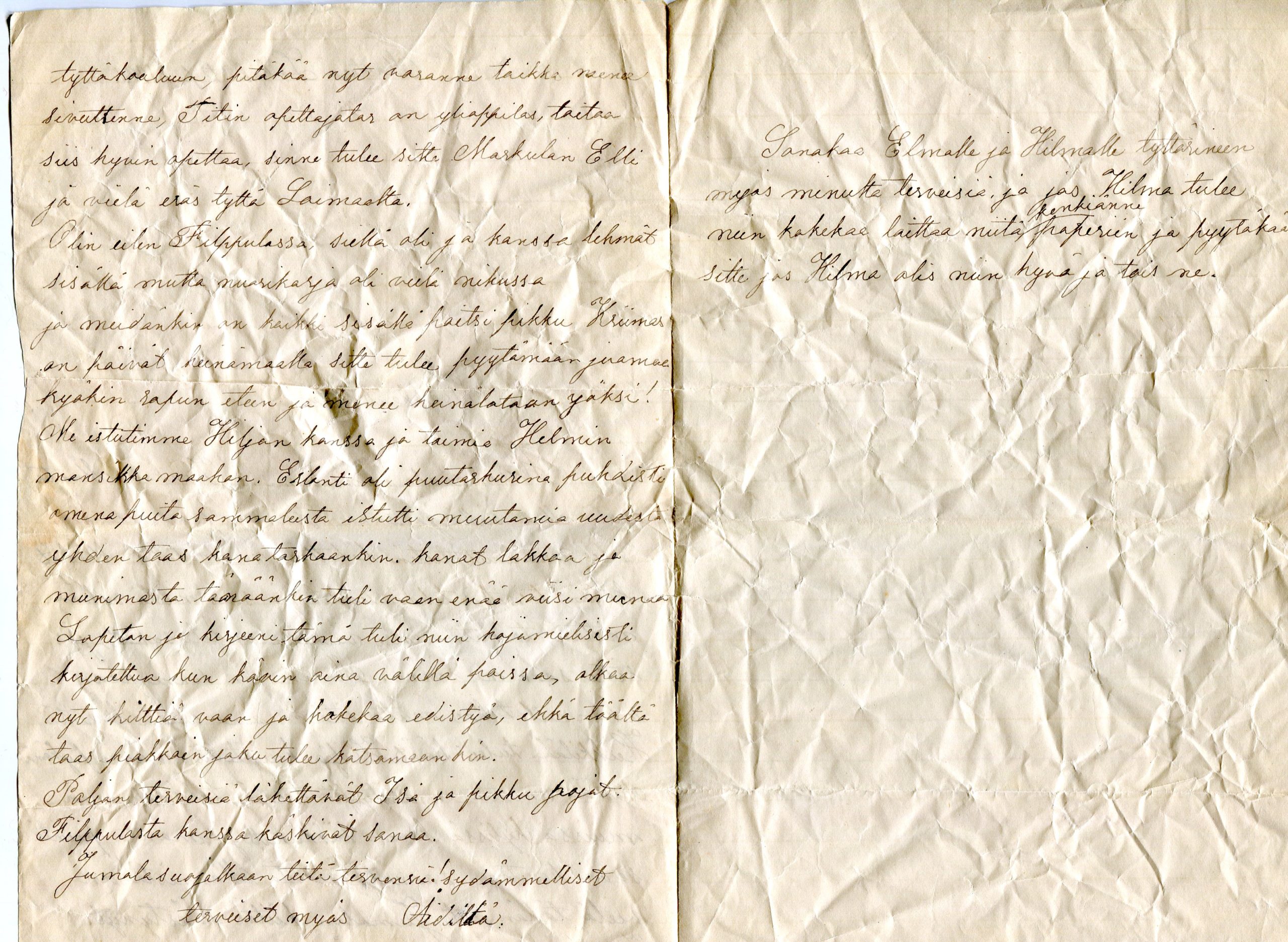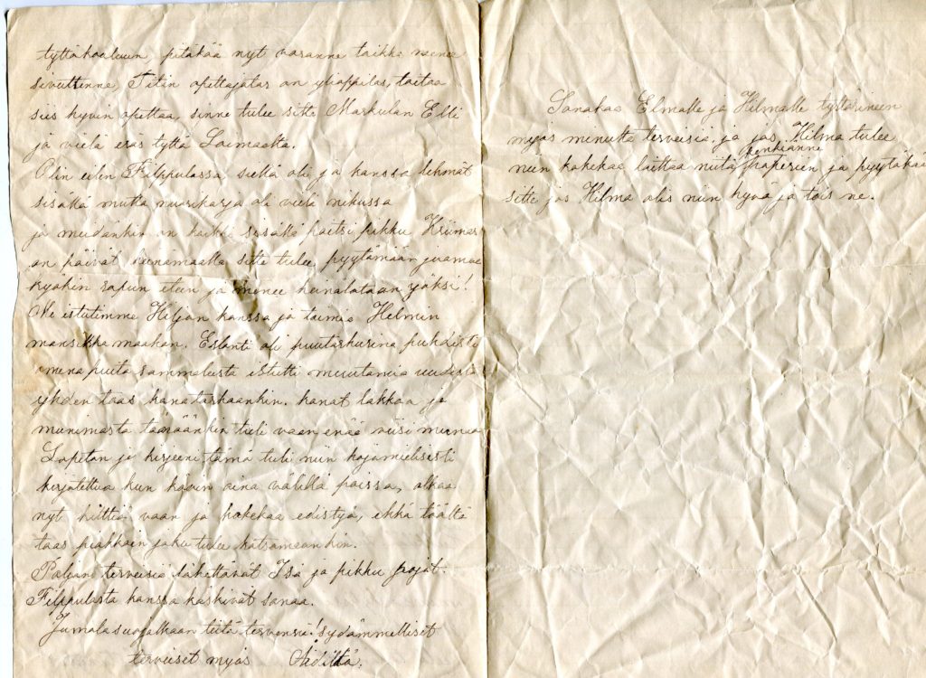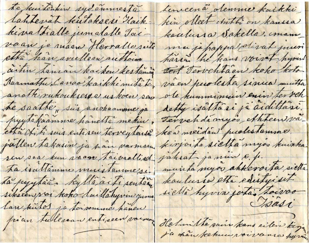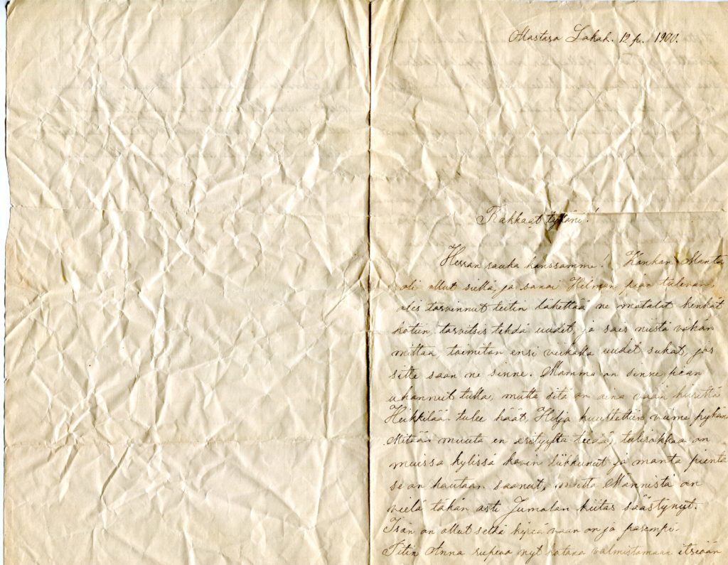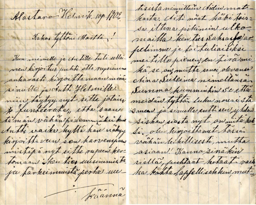 Ainan kirje tyttärilleen vuonna 1900